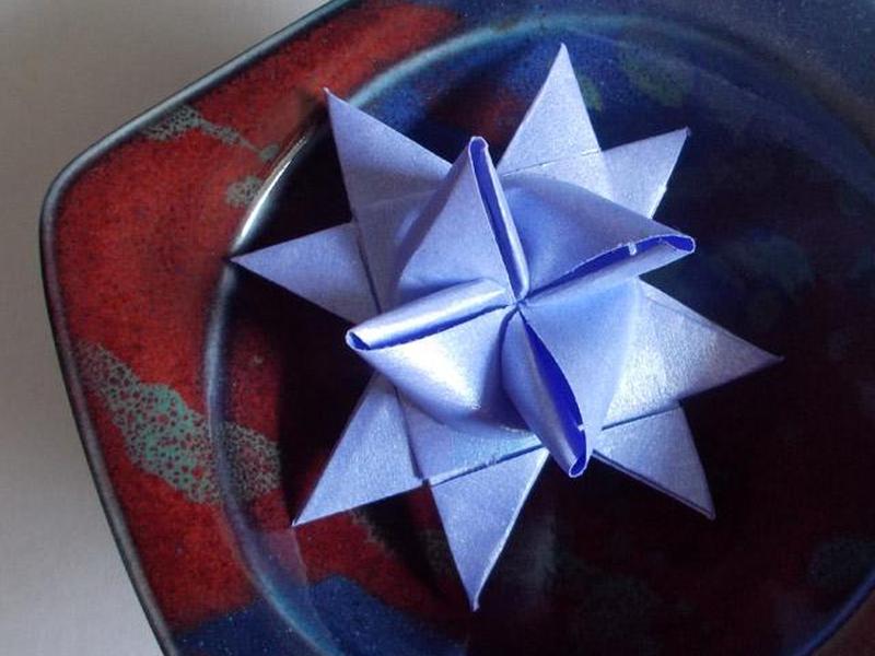 2. Аккуратно обрежьте ножницами оставшиеся кусочки бумаги. Восемь плоских точек звезды, которые вы создали в первых двух разделах урока, должны стать вашим руководством для обрезки. Ваша немецкая рождественская звезда готова. (См. Фото 9.)