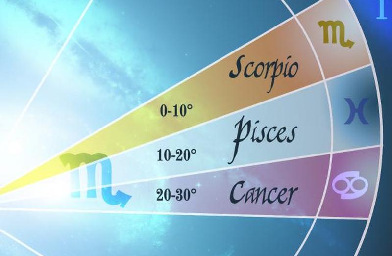 - Вторая декада Скорпиона/Рыб: от 10° до 20° Скорпиона, управляемая Нептуном и Юпитером.