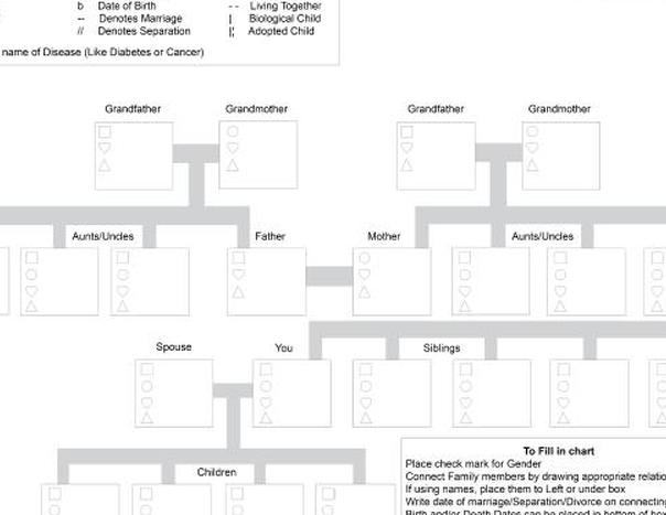 - Национальный научно-исследовательский институт генома человека: Помимо шаблона, этот раздаточный материал предлагает варианты часто используемых символов и предлагает советы и рекомендации о том, как создать жизнеспособную, интересную генограмму вас и вашей семьи.