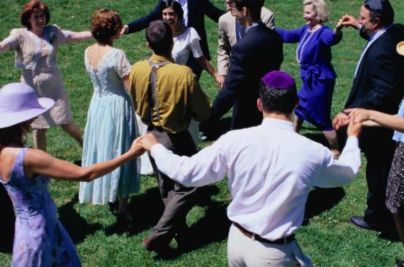 - На израильских свадьбах также принято поднимать жениха и невесту (а иногда и других членов семьи) на стульях.