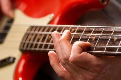 На приведенной ниже диаграмме показаны все четыре струны бас-гитары и ноты, связанные с открытой струной и первыми десятью ладами. Можно играть мажорные гаммы, используя различные комбинации струн и ладов.