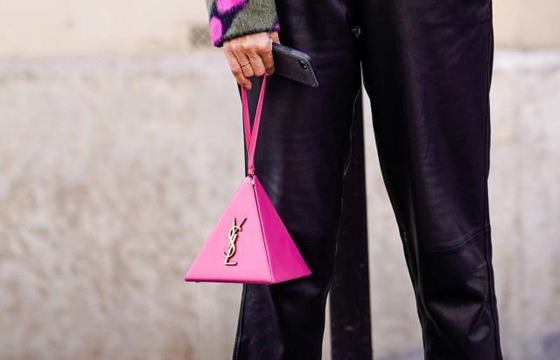 9. Треугольная пирамидальная сумка из веганской кожи с ремешком на запястье