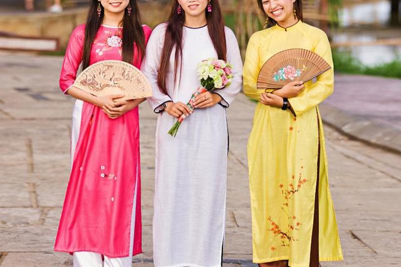 Национальная одежда Вьетнама, аодай (буквально «длинная рубашка»; произносится «оу зай» на севере, «оу яй» на юге) состоит из двух элементов: длинной туники с облегающим лифом, воротника-стойки, реглана. рукава и боковые разрезы, образующие вставки спереди и сзади от талии вниз; и широкие штаны, часто скроенные по косой. В то время как в прошлом аозай носили и мужчины, и женщины, в двадцать первом веке это почти исключительно женская одежда. Популярная униформа для государственных служащих, гидов, сотрудников отелей и ресторанов и старшеклассников, аозай также носят на свадьбах, религиозных ритуалах и в особых случаях. Обычно считается символом традиционной вьетнамской идентичности и женственности.