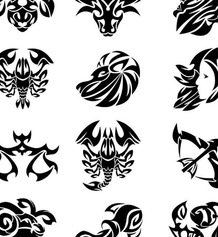 На этой странице представлен западный зодиак, выполненный в племенном стиле. Вы можете выбрать дизайн для своего собственного знака или использовать весь кусок в качестве татуировки на спине.