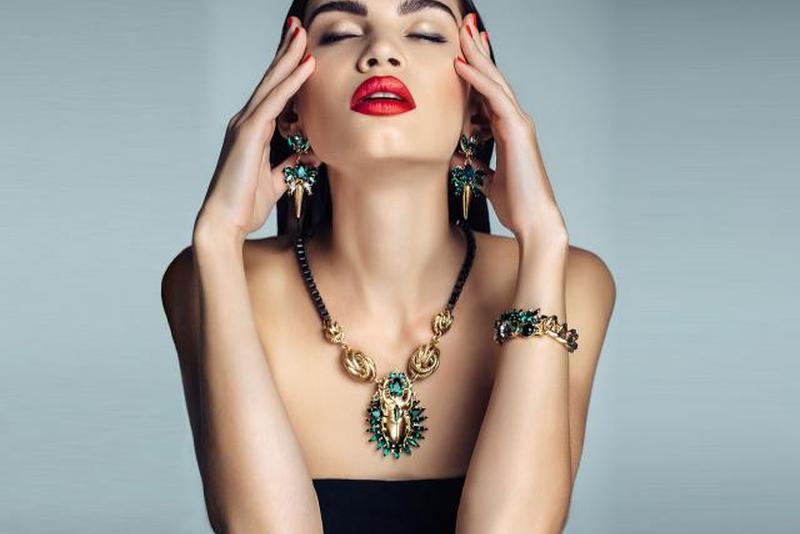 Самой распространенной ювелирной имитацией в 1920-е годы было жемчужное ожерелье. Нити жемчуга или цветные бусы аккуратно обвивали шею или доходили до талии, бедер и даже до колен, заставляя двигаться в быстрых танцах, таких как чарльстон. В конце периода, когда маленькое черное платье стало дневным стандартом, более короткие нити из светлых бус и жемчуга продолжали оставаться любимыми аксессуарами. Ювелирные изделия со стразами также обрели известность, так как они были идеальным фоном для двух модных новинок: загара и белых вечерних платьев.