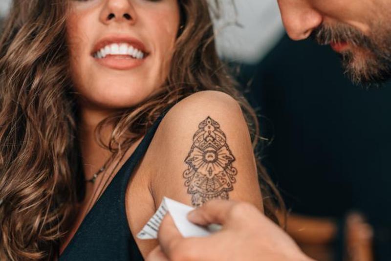 Начинайте рисовать временную татуировку в левом верхнем углу (или в правом верхнем углу, если вы левша), чтобы избежать смазывания.