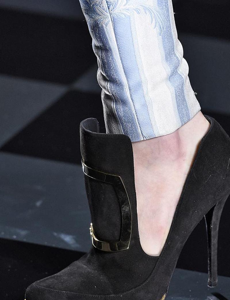 Эти ботинки с открытым носком, замеченные на показе мод Armani в Милане, являются прекрасным примером того, как обувь может переходить из одного сезона в другой.