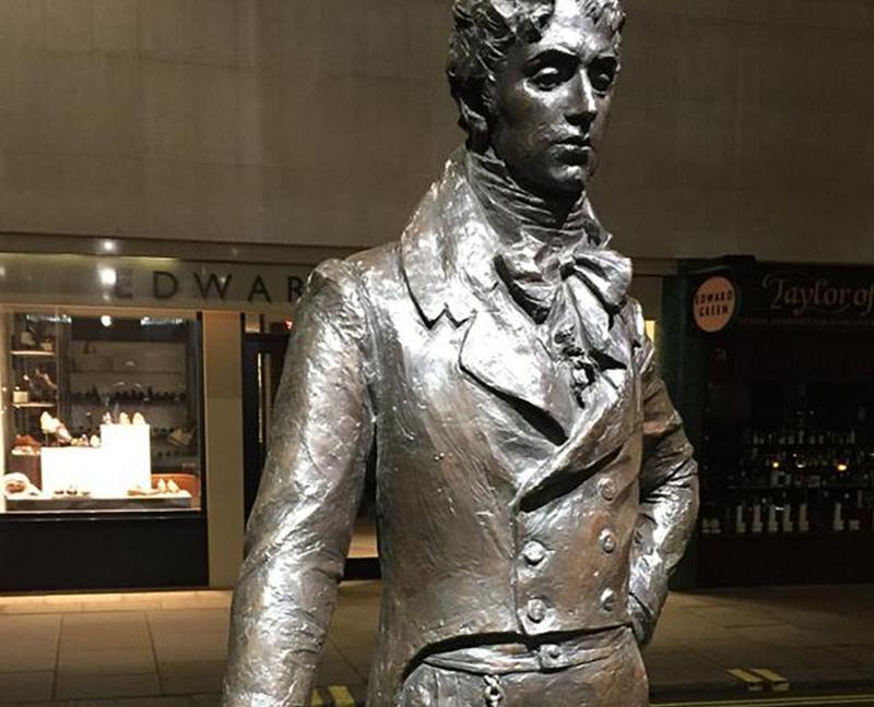Джордж Брайан Браммелл (или Браммель), наиболее известный как «Бо» Браммелл, родился в Великобритании в 1778 году и умер в 1840 году во Франции. Его одежда и манера поведения установили многие каноны дендизма. Хотя он не был аристократом по происхождению, он поднялся в рядах регентского общества (1795-1820) и принадлежал к кругу принца Уэльского, известного как принц-регент, ставшего королем Георгом IV. Его отец был государственным служащим и секретарем лорда Норта, хотя его дед, вероятно, был камердинером. Браммелл получил образование в Итоне и покинул Оксфорд в возрасте шестнадцати лет, когда он унаследовал от своего отца сумму, которая, по оценкам, составляла от 15 000 до 65 000 фунтов стерлингов. Он стал корнетом в Десятом гусарском, княжеском полку, известном как «Элегантные экстракты», и был капитаном к моменту выхода в отставку из армии в 1798 году.