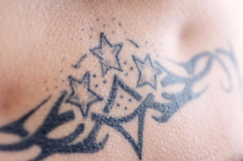 Эта смелая татуировка мгновенно становится более скромной, если ее скрыть под прозрачным нейлоном.