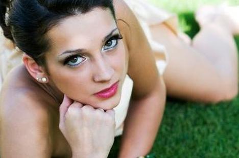 Если у вас такие же большие и красивые глаза, как у этой модели, подчеркните их еще больше с помощью соответствующего оттенка зеленых теней для век — вы будете красавицей бала.
