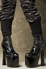 Готическая обувь часто имеет платформу, танкетку или массивный каблук. К популярным украшениям относятся: