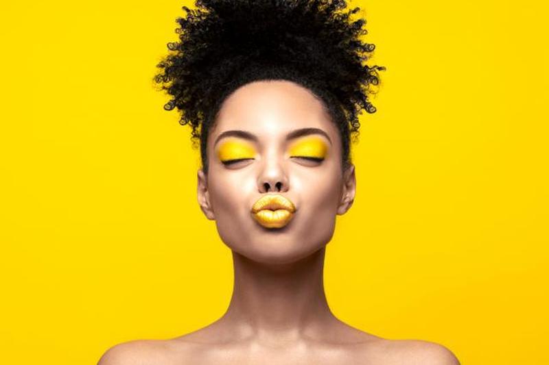 - Нанесите ярко-желтые тени на все веко с помощью кисточки для теней. Сделайте это для обоих глаз. Цвет должен доходить от подбровной кости до линии роста ресниц.