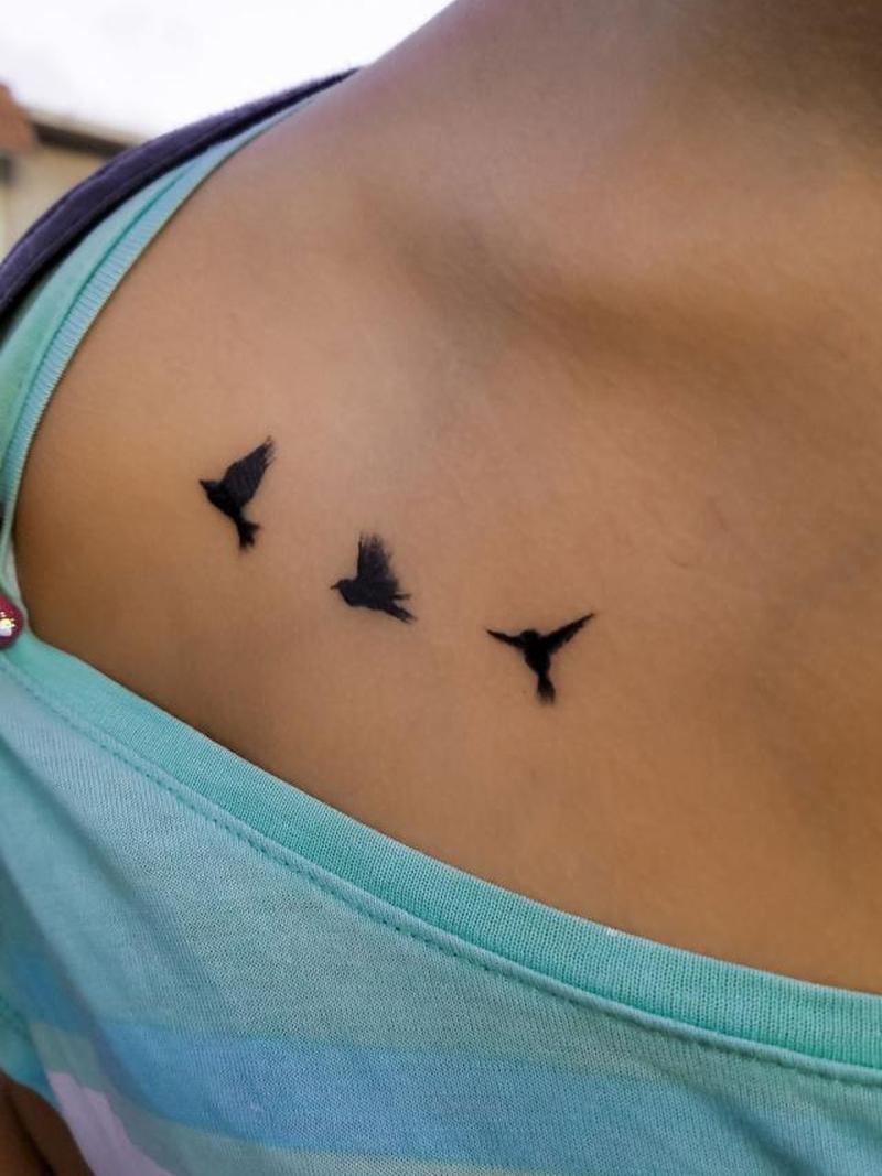 Еще одна отличная идея для матерей-одиночек или детей старшего возраста – Татуировки Птиц . Эти птицы означают, что ваши дети улетают или ваша стая летит вместе. Птицы в этом дизайне могут быть выполнены в простом контуре или детализированы. Хотя этот дизайн может подойти где угодно, птицы, летящие вдоль ключицы или спины, добавляют интереса и интриги.