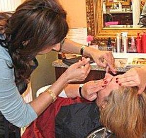 Парин Мерчант (ПМ): Искусство нанизывания зародилось на Ближнем Востоке и в Южной Азии. Мы используем специальную нить, которую скручиваем и протягиваем по участку нежелательных волос. Нить действует как мини-лассо и поднимает волосяной фолликул прямо от корня. Процесс очень быстрый, и вы можете выбрать отдельные волосы или пучок волос в зависимости от области. Нужно растянуть кожу в этой области, чтобы волосы можно было легко удалить.