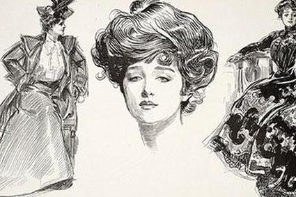 - Девушка Гибсона : Этот образ, считающийся идеальной женской формой , отличался большой грудью, тонкой талией и округлой задней частью, и все это было достигнуто с помощью корсетов из лебедя. Это соответствовало почти неземному представлению о красоте, когда у женщин были длинные элегантные шеи; Волосы у них были призывно собраны высоко на голове, и они смотрели вдаль, мечтательно.