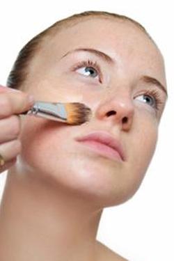 - Нанесите на кожу тональный крем. Это можно сделать руками или маленькой кистью для основы. Нанесите ровный слой на все лицо и дайте полностью высохнуть.