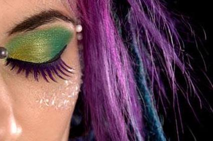 - Добавьте мерцающие фиолетовые тени поверх черных теней до бровей.