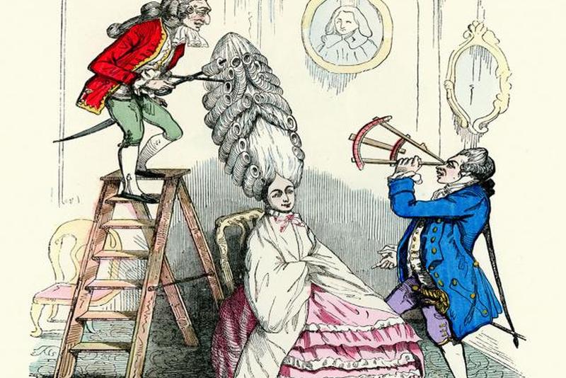 Карикатурный отпечаток 1760 года расширяет более общую культурную ассоциацию женщин с крайностями моды на мужчин, поскольку они тщательно изучают манеру поведения и одежду макарон (ок. 1760-1780), а затем олень и денди (ок. 1800-1820). Гравюры включали как вымышленных, так и узнаваемых жителей мегаполиса, а также относились к стандартным театральным типам, таким как щеголь, немецкий фризер (пожилой и уродливый парикмахер-мужчина, чья физиономия была взаимозаменяема с евреем), танцмейстер (французский и изнеженный), деревенский и шотландец, «Биллингсгейт Молл» (рыночная женщина) и «Городская дама» (проститутка). На гравюрах Мэтью Дарли чем более низкорожденным был изображен человек, тем более грубым был иллюстративный стиль, предполагающий более грубую имитацию или исполнение модных тенденций. Эти различия увековечивают веру в то, что ордена по своей сути либо вульгарны, либо выше в зависимости от ранга, а также подчеркивают шутку, содержащуюся в переходе границ одежды от класса к классу. Точно так же, как развитие карикатуры требует своей противоположности, идеализированной эстетики, так и замысловатые формы, удивительные жесты и новые отступления карикатуры прекрасно отражали современные представления о придирках моды.