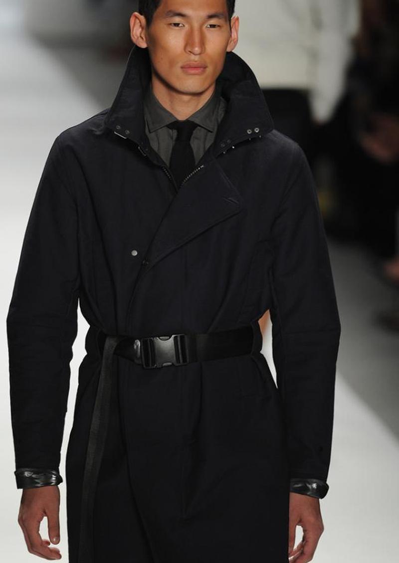 Повседневные комбинации также можно считать утонченной мужской модой. Здесь в игру вступает дизайнер. Этот ансамбль Carlos Campos — идеальное сочетание утонченности и дерзости. Возьмите плащ и накиньте его на пару хорошо сшитых угольно-серых брюк и черную рубашку; вы на пути к повороту головы.