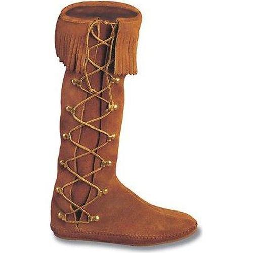 - У украшенных стилей есть несколько дюймов бахромы, окружающих отверстие. Некоторые дизайнеры создают специальные мокасины до колена из различных материалов с необычными рисунками .