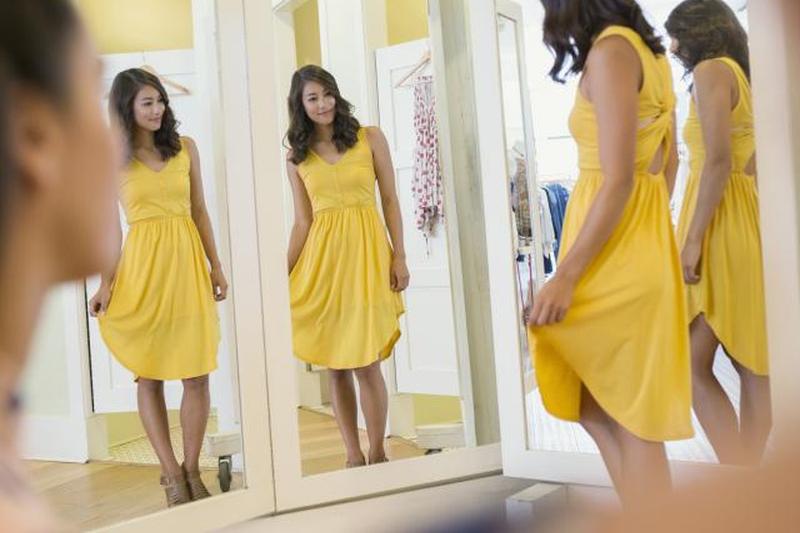 В качестве существительного «платье» используется несколькими способами: для обозначения цельного женского предмета одежды, для обозначения категории одежды, такой как «праздничное платье» или «военное платье», или как общее обозначение внешнего вида человека. или различные личности. Глагол «одевать» указывает на процесс использования различных предметов для покрытия, украшения и модификации тела. Акт одевания включает в себя все пять чувств и включает в себя больше, чем ношение одежды. Одевание включает в себя укладку волос, нанесение духов, лосьона и косметики, а также надевание одежды различной текстуры и цвета и украшений, таких как ожерелья, серьги и звенящие браслеты. Одежда обычно передает аспекты личности человека.