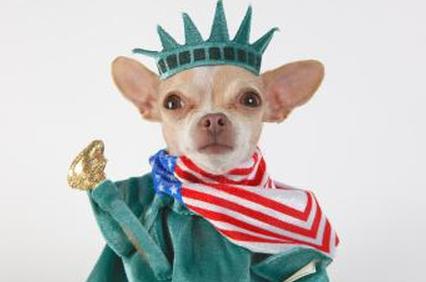 Если вы опасаетесь, что вашей собаке будет слишком жарко в костюме с ног до головы, просто наденьте ему на голову патриотическую шляпу. Готовые и нестандартные патриотические головные уборы для собак доступны в магазинах и в Интернете. Большинство из них сделаны из ткани со звездами и полосками и закреплены на резинке, которая закрепляется под подбородком или завязывается ленточными завязками. Вы также можете выбрать капот в стиле 4 июля или изысканную черную замшевую шляпу Bicorne с причудливыми золотыми ремешками и пуговицами, которые превратят вашу собаку в миниатюрного Наполеона Бонапарта.