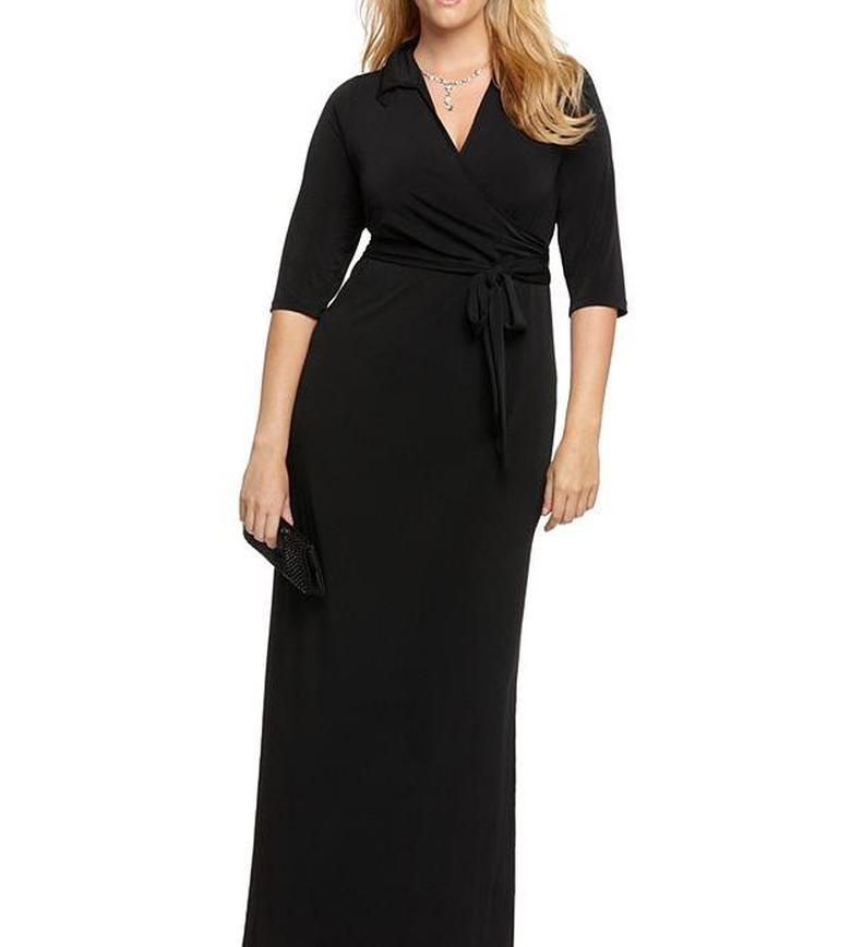 Макси-платье NY Collection Faux Wrap: это черное макси-платье стоит менее 40 долларов и доступно в размерах от 1X до 3X. Он сделан из смеси полиэстера и спандекса и очень удобен и прост в носке. Приталенная талия с поясом, рукава три четверти и заостренный воротник. Это платье доходит до середины голени и очень льстит из-за искусственного запаха. Покупатели, купившие это платье, отмечают, что оно стройнит фигуру и удобно в носке. Один рецензент упомянул, что он идеально подходит для путешествий и его можно носить в самых разных случаях.
