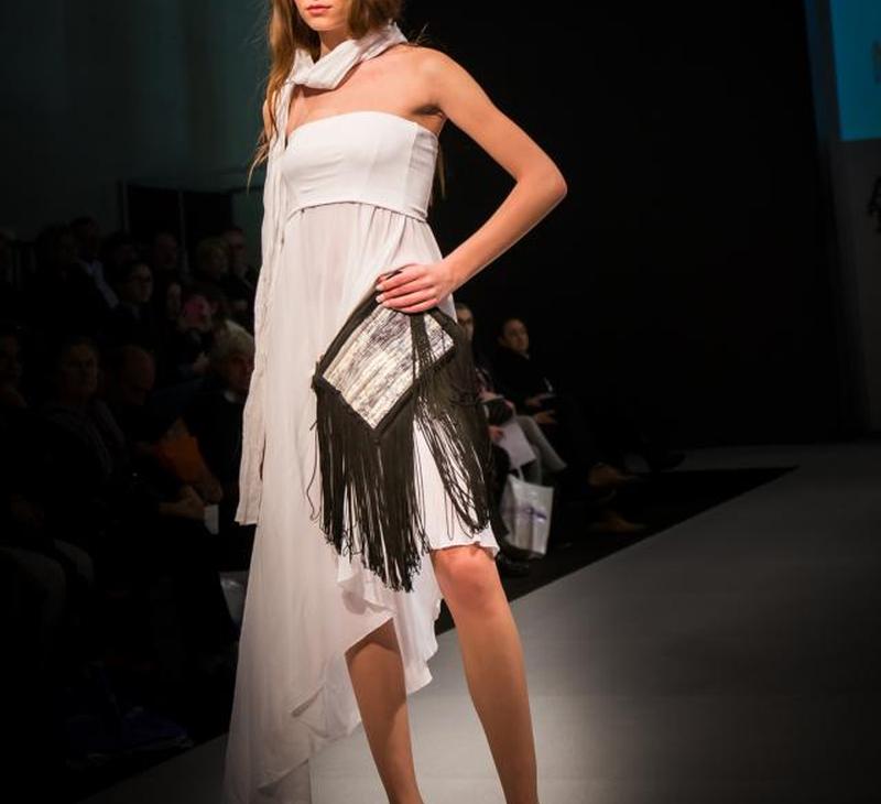 Четкие линии и минимальная суета — главные черты этого летнего дизайна. Добавьте подходящие туфли телесных тонов для эффекта удлинения.