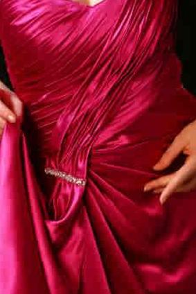 - Платье Эванджелин Лилли «Эмми» 2006 года из шармеза виноградного цвета и шифона с плиссированным лифом.