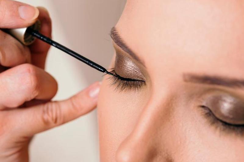 Нанесите жидкую подводку или гелевые подводки на глаза плавными движениями тонкой линии. Затем создайте толщину линии по желанию.