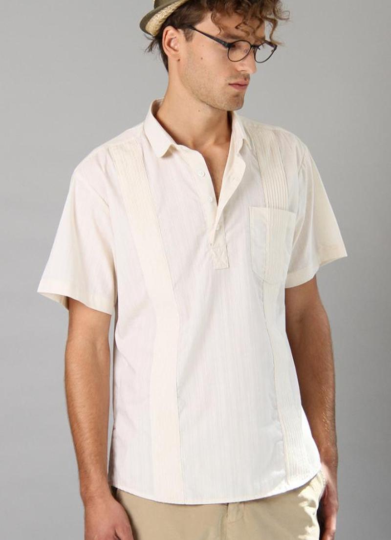 Мужская повседневная одежда должна быть удобной и стильной. В этом образе от Sergio Davila рубашка светло-кремового цвета дополняет светло-коричневые брюки, создавая свежий образ, который идеально подходит для беззаботных выходных или случайных свиданий.