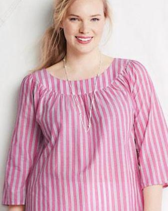 Платье-футболка в полоску : красивое платье из мягкой вязки от Avenue — настоящая классика. Расклешенная юбка придает непринужденный вид, а короткие рукава идеально подходят для весеннего сезона. Он поставляется в размерах до 32 примерно за 40 долларов.