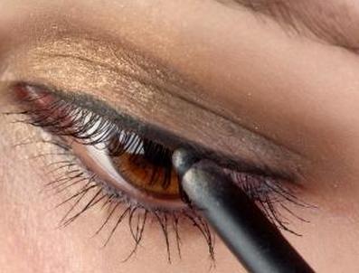 - День к вечеру. Иногда нам приходится переходить от дня к вечеру, не имея времени сменить макияж. Для создания образа от дневного до вечернего нанесите подводку вдоль внешних краев верхнего и нижнего века, используя точки и тире вдоль линии роста ресниц нижнего века, и растушуйте.