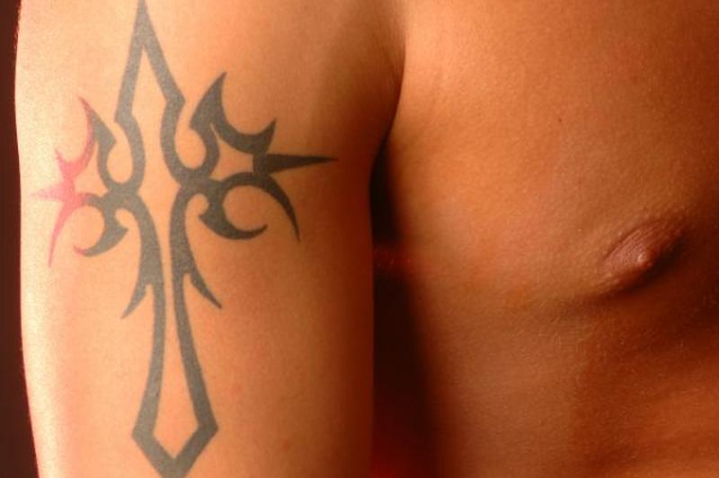 Большой крест на бицепсе – популярный вариант татуировки у мужчин. Эта татуировка смелая и мужественная, она является символом силы и могущества.