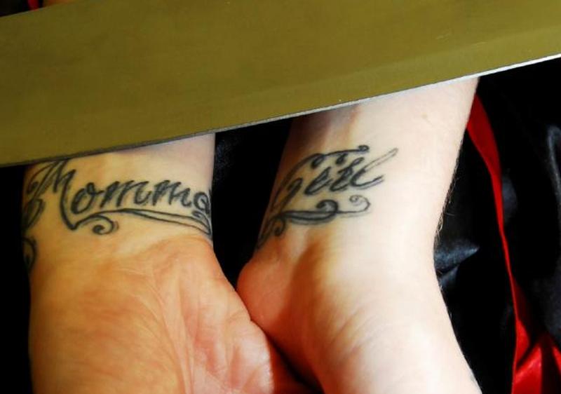Татуировка текста или слов на внутренней стороне запястья становится все более популярной. Текст расположен так, что носитель татуировок может прочитать надпись, глядя на свою руку, а не отображать текст только там, где его могут прочитать другие. Эти типы личных заявлений могут быть утвердительными, воодушевляющими или сентиментальными по своей природе, как эта свадебная татуировка.