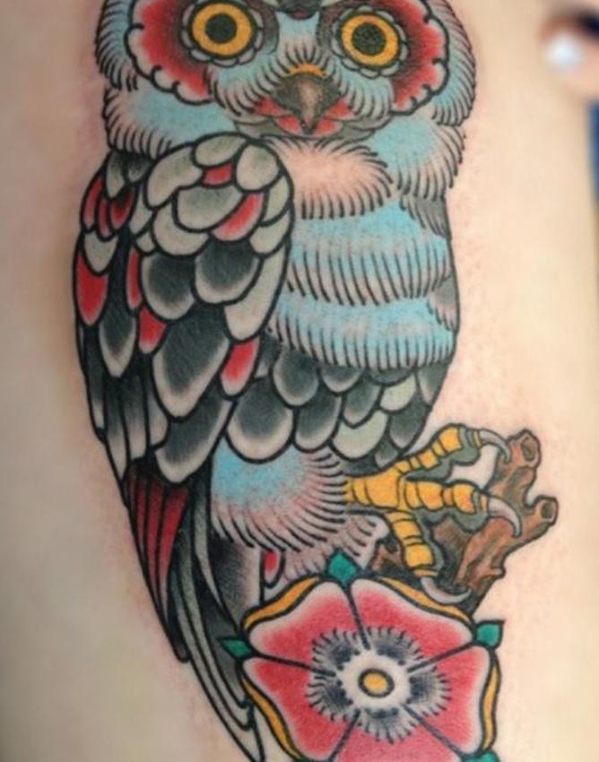 В татуировках красный цвет может символизировать целебное свойство защиты. Красный — подходящий выбор для татуировки совы, размещенной на задней части плеча, где ночной охотник может охранять владельца и защищать его или ее от вреда. Такой дизайн будет одинаково хорошо смотреться как на мужчинах, так и на женщинах.