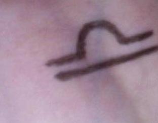 Символ знака Весов, который часто называют глифом, является, пожалуй, самой известной татуировкой Весов. Говорят, что сам символ представляет собой изображение заходящего солнца, способ символизировать новый день. Также говорят, что этот символ показывает «средний путь» Весов. Поднимающаяся шишка посередине показывает, что Весы могут уравновесить обе стороны проблемы, не нанося вреда ни одной из сторон. Еще одно толкование символа – это символ, внешне похожий на знак равенства. Поднимающаяся шишка в первой строке иллюстрирует справедливость, которой обладает астрологический знак.