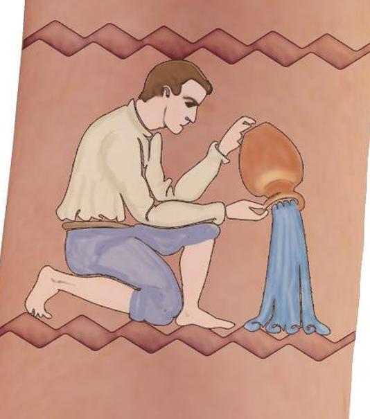 Еще одна любимая татуировка Водолея включает в себя использование глифа этого знака, который представляет собой две перпендикулярные волнистые линии. Глиф часто включается в более крупные рисунки.