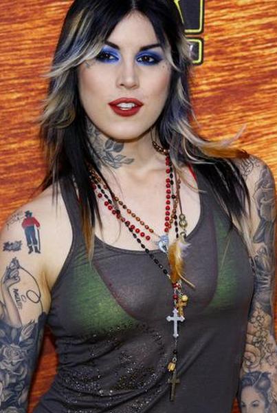 Звезда собственного реалити-шоу Кэт фон Ди — известная тату-художница, родившаяся в Мексике и в настоящее время работающая в Голливуде, штат Калифорния. В дополнение к татуировкам в более «традиционных» местах, таких как руки и ноги, у г-жи фон Д. также есть татуировки на руках, шее и лице. Ее лицевые татуировки особенно похожи на женские, противоречащие идее о том, что лицевые татуировки умаляют женскую красоту.
