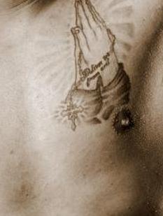 Католики, которые делают татуировку такого типа, часто предпочитают изображать двух молящихся, сжимающих набор четок. Это означает их веру и преданность своей религии и Богу.