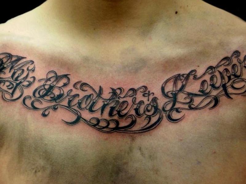 Размещение татуировки с цитатой, такой как хранитель моего брата, ограничено только вашим воображением и размером, который вы ищете. Маленькая цитата может плавать по верхней части бедра, а крупная плавная формулировка может быть нечитабельной на запястье. Некоторые более распространенные области размещения включают в себя: