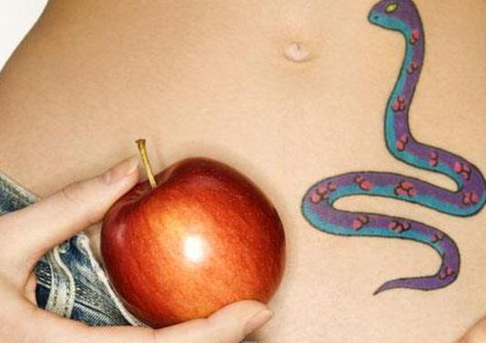 - Станьте библейским и оберните свою змеиную татуировку вокруг яблока.