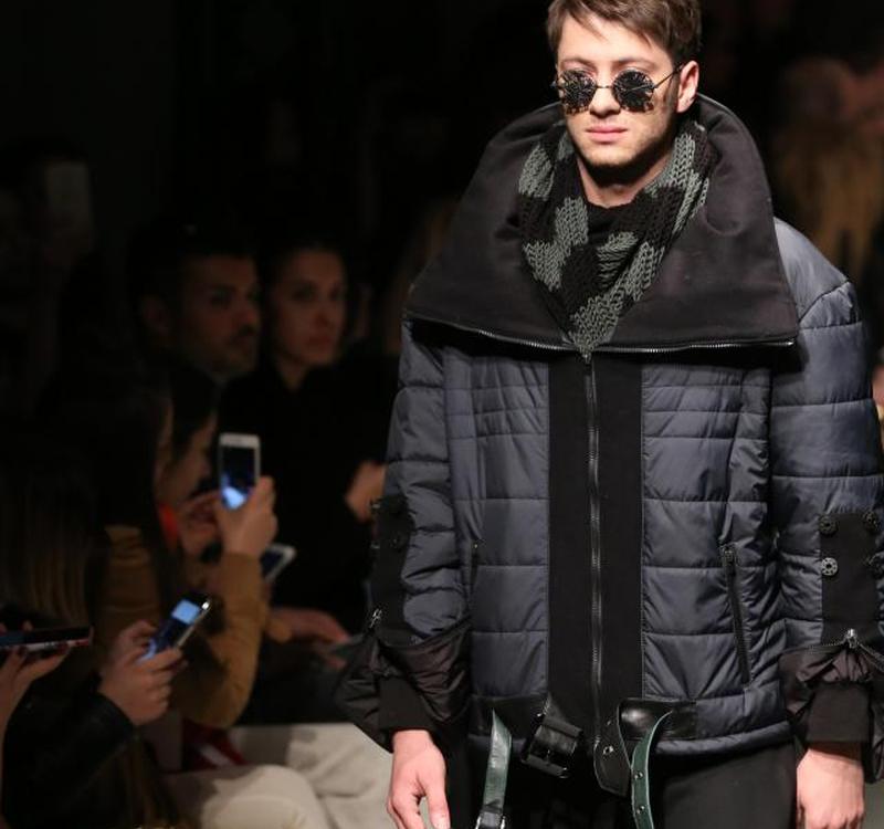 Этот образ для холодной погоды с показа Safak Tokur Catwalk хорошо подходит для мужского телосложения и одновременно выглядит изысканным и грубым.