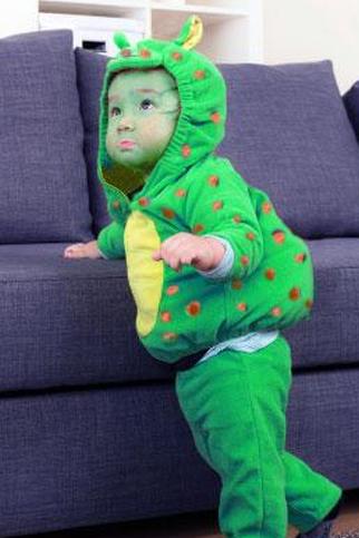 Для костюма монстра начните с оливково-зеленого, темно-коричневого или черного спортивного костюма. Купите войлок другого цвета и вырежьте крылья, хвост и пятна разных размеров. Добавьте овал большего размера для животика. Пришейте или аккуратно приклейте фетр к костюму горячим способом. Добавьте краску для лица, чтобы окрасить лицо в оттенок пота или фетра. Вы можете проявить еще больше творчества, добавив искусственные бородавки, зубы монстра и т. Д.