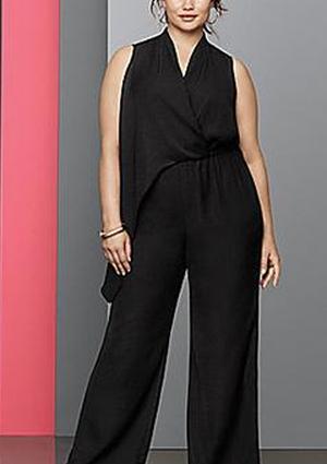 - Сексуальный комбинезон из коллекции Lane. Этот комбинезон из полиэстера, выполненный в классическом черном цвете, продается в магазинах и онлайн. Он элегантный и сексуальный . Он стоит около 60 долларов и доступен в размерах от 14 до 24. Для дополнительного интереса и стройности фигуры этот комбинезон имеет драпированную вставку спереди и вырез на бретельках. Вырез горловины с эффектом подчеркивания бюста и эластичная талия для индивидуальной посадки. Рецензенты сайта отмечают отличную посадку в области бюста и отмечают, что этот фасон не стягивает и не стягивает. Другие отмечают, что этот стиль классный и стильный и идеально подходит для работы.