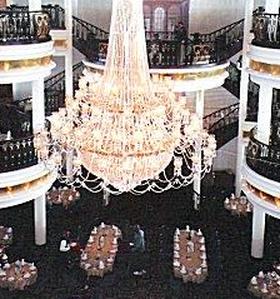 Ядром круизных путешествий является главный обеденный зал: всем пассажирам выделяется место в этих общих ресторанах, часто в определенное время, чтобы облегчить предпочтения в еде и облегчить обслуживание сотен или тысяч пассажиров. Обычно есть как раннее, так и позднее время обеда, и пассажиры могут запросить предпочтительное время при бронировании рейса , хотя запросы не гарантируются. За питание в основных обеденных залах не взимается дополнительная плата.