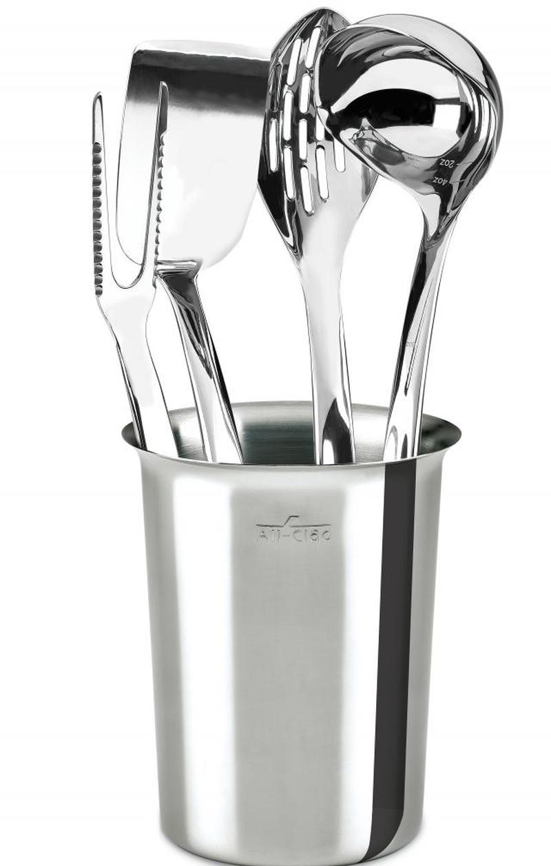 Инструменты в наборе Precision из нержавеющей стали All-Clad, состоящем из пяти частей, прочные, потрясающие и практичные — они представляют собой «полный пакет» формы и функций. Каждый кусочек приятен на ощупь, когда вы его держите и используете, что упрощает приготовление ваших любимых рецептов. Кроме того, они настолько красивы, что вы можете легко использовать их как для сервировки, так и для приготовления пищи — даже для особых случаев.