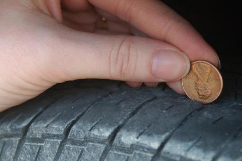 - Вы также можете проверить износ протектора шины по старинке. Поместите пенни между протекторами шин. Поверните его так, чтобы голова Авраама Линкольна была направлена вниз. Если вы видите его волосы, значит, шина изношена и ее нужно заменить. Если часть его головы покрыта протектором, вероятно, ваши шины еще больше изношены.