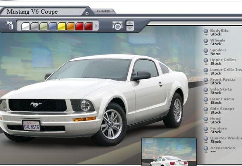 На этом экране показан веб-сайт PonyBuilder (розничный продавец нестандартных запчастей), который позволяет вам создать красивый Mustang любой модели и с любыми функциями, которые вам нужны.