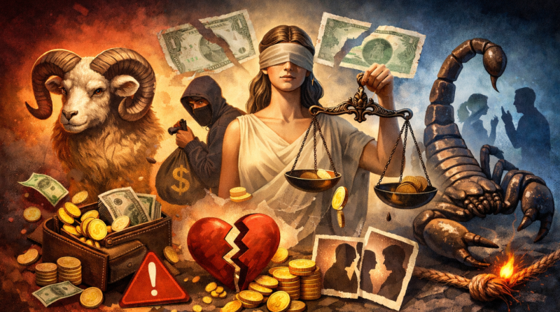 Основной риск – предательство со стороны близкого круга. Это может быть как рабочая ситуация, так и личная история. Финансово месяц тоже нестабильный: лучше отказаться от крупных трат и не давать деньги в долг. В отношениях возможны неприятные разговоры.